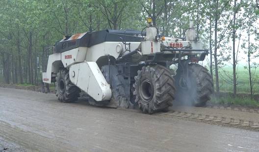 我公司去年研發成功的全電控機械傳動路面冷再生機RZ2300,從今年3月出廠以來,先后轉戰3個工地,中間雖小有波折,但經我公司技術人員的調整,隨著機手逐漸熟悉機器的性能,孰練掌握機器的操作技巧,機器的工作速度越來越快。今天,從項城S102省道工地傳來喜訊,水穩路基冷再生施工,機器老板親自指揮機手操作機器,讓機手逐步加快機器的工作速度,機器老板高興地打來電話說,機器工作速度出乎意料地快,驅動輪胎轉一圈只要24秒,計算結果是一分鐘可以跑12米,這說明我們的機械傳動冷再生機的性能發揮出來了,機器的性能達到了設計要求,正如用戶所說,我們的新產品大有前途,可以與國際產品媲美。
