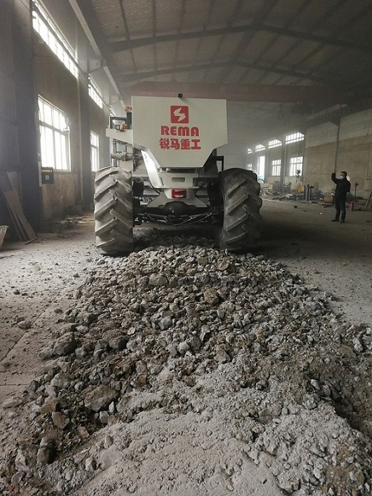 2017年歲末,我路拌公司研發的新產品RS600水泥路面破碎機樣機下線,并成功完成了水泥路面的破碎試驗,試驗的結果讓開發人員驚喜,實際工作效果超出預期,報廢的車間水泥路面強度雖然高,但破碎機工作穩定,堅硬的水泥路面輕松破碎。